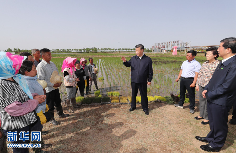 6月8日至10日,中共中央總書記、國家主席、中央軍委主席習(xí)近平在寧夏考察。這是6月9日下午,習(xí)近平在銀川市賀蘭縣稻漁空間鄉(xiāng)村生態(tài)觀光園,同正在勞作的村民親切交談。 新華社記者 鞠鵬 攝