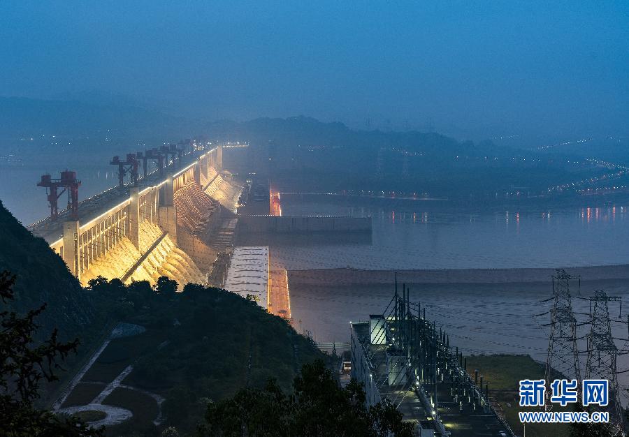 6月8日拍攝的三峽大壩泄洪閘夜景。 6月8日17時(shí),三峽水庫水位消落至144.99米,提前兩天完成消落任務(wù)。據(jù)長江水利委員會介紹,三峽水庫本輪消落自2019年12月開始,水位自正常蓄水位175米左右消落至汛限水位145米,共消落水位約30米,騰出防洪庫容221.5億立方米,為迎戰(zhàn)長江流域可能發(fā)生的洪水提供安全保障。 新華社發(fā)(向紅梅 攝)