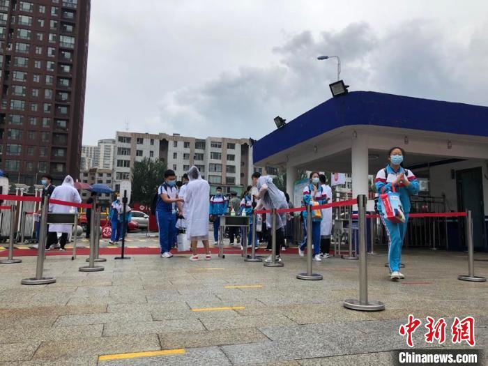 初三學(xué)生測(cè)溫入校園 蒼雁 攝