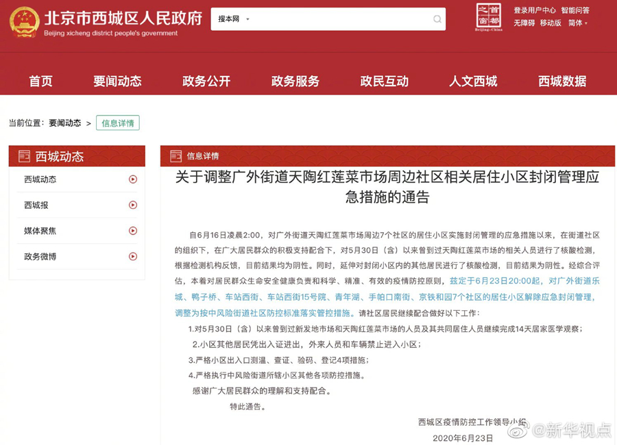 北京西城天陶紅蓮菜市場周邊7社區(qū)解除應急封閉管理-新華網(wǎng)
