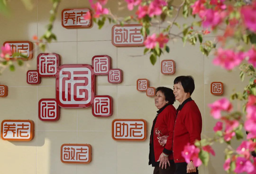 老人們在福建省晉江市磁灶鎮(zhèn)大埔村敬老院散步(新華社記者宋為偉 攝)