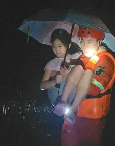 6月27日晚,湖北荊門竹皮河社區(qū),消防員成功救出1名被困女孩。王 方攝(人民視覺)