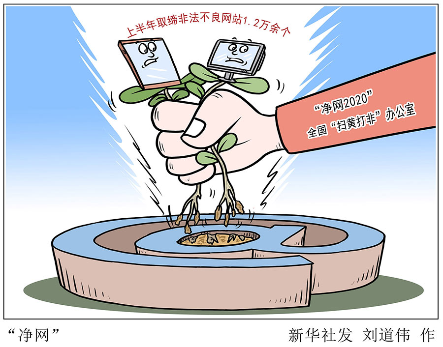 新華社北京7月9日電(記者史競男)全國“掃黃打非”辦公室9日公布,“凈網(wǎng)2020”專項行動已取得階段性明顯成效:今年上半年,全國共查處網(wǎng)絡“掃黃打非”案件1800余起,取締非法不良網(wǎng)站1.2萬余個,處置淫穢色情等有害信息840余萬條。