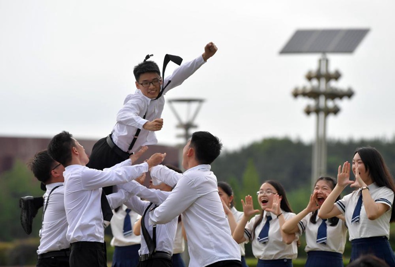 在南昌大學校園內(nèi),學子們一起歡呼,拍畢業(yè)照留念(6月10日攝)。新華社記者彭昭之攝