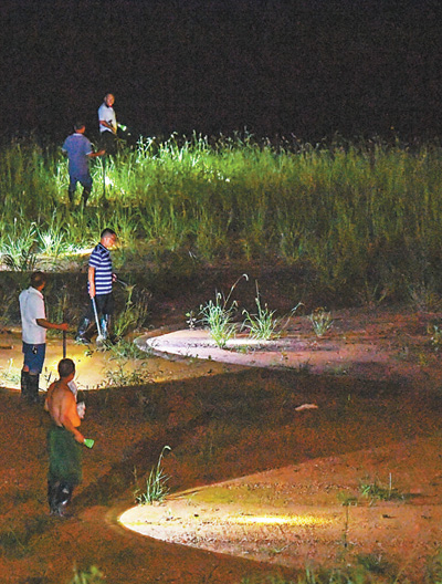11日,湖南岳陽市君山區(qū)的洞庭湖大堤上,抗洪人員在巡堤查險。新華社記者 陳澤國攝