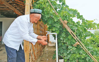 如今,伊米提老人家廚房、衛(wèi)生間和院子里各有一個(gè)水龍頭,擰開就能喝到甘甜的水?!斑@是慕士塔格峰的雪水!水甜,生活更甜!”伊米提從菜園里摘了西紅柿,在水龍頭下沖了沖,吃到嘴里,甜滋滋的。(記者 李亞楠)