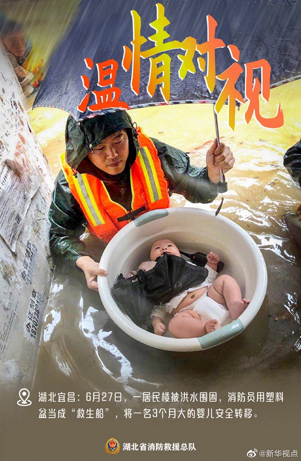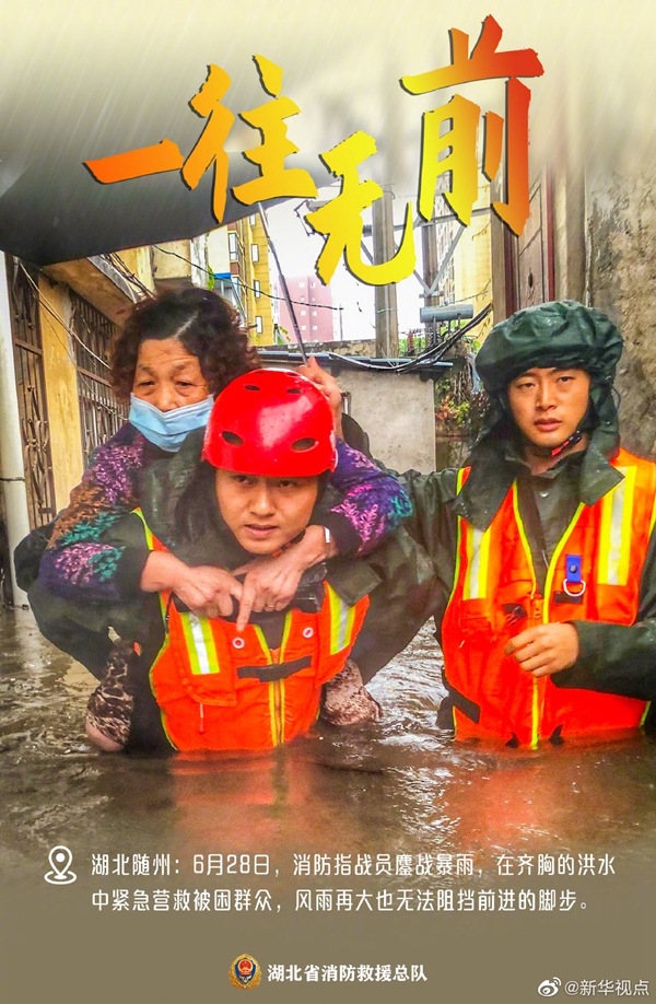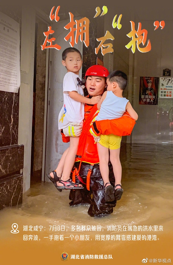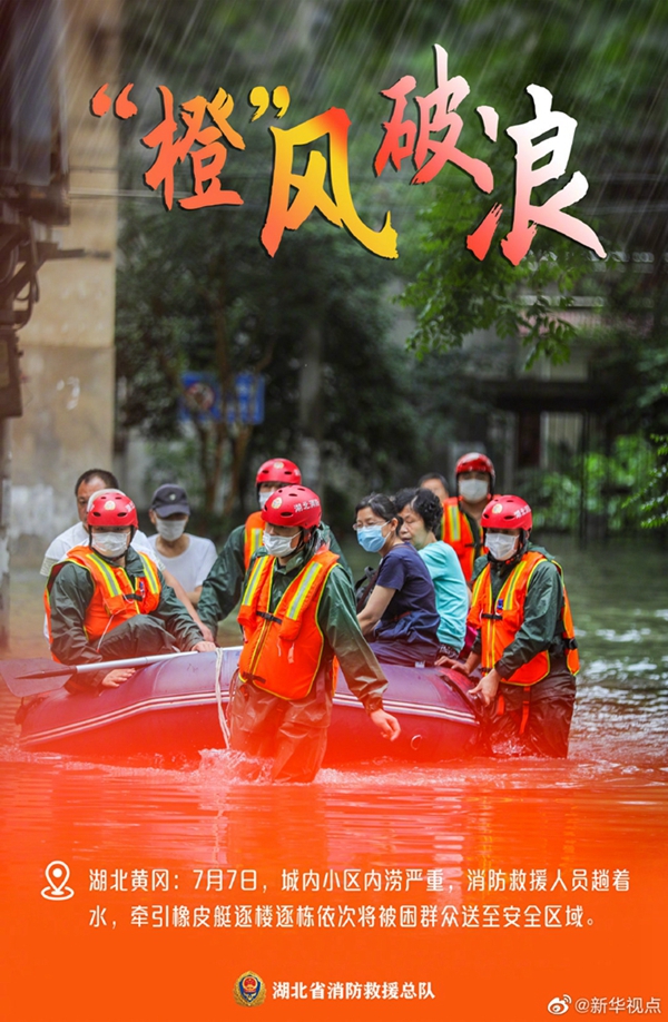 湖北近期遭遇持續(xù)強降雨天氣,部分地區(qū)出現(xiàn)洪澇災(zāi)害。洪水襲來,在救援現(xiàn)場奔波忙碌的消防救援人員,始終沖在一線,“橙”風破浪,守護著人民群眾的生命和財產(chǎn)安全。這抹“橙”,成為災(zāi)區(qū)人民心中最溫暖的底色。向“逆行者”致敬?。ㄓ浾吡航◤姡?/p>