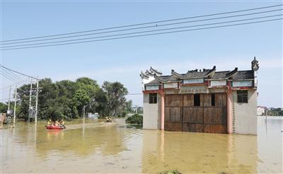 7月14日,江西省鄱陽縣龍口村下屬自然村藕塘村文化中心,洪災(zāi)期間成為進(jìn)出村內(nèi)的碼頭。