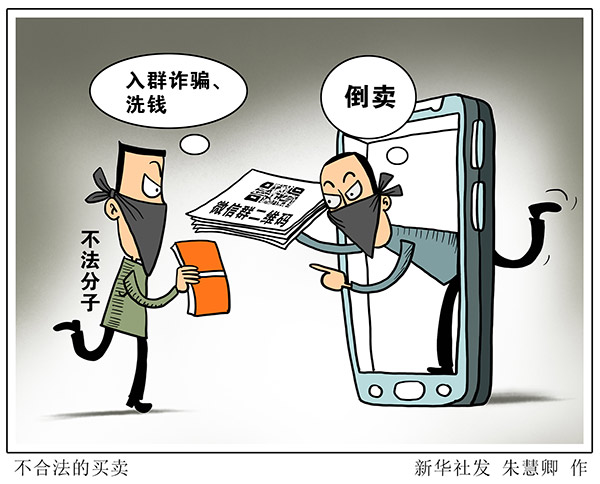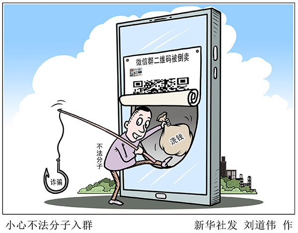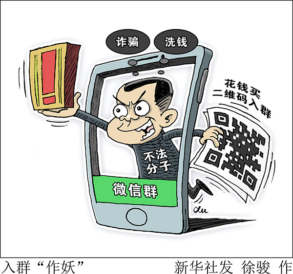 “新華視點(diǎn)”記者調(diào)查發(fā)現(xiàn),微信群的二維碼在網(wǎng)絡(luò)上被倒賣(mài),一些不法分子借此實(shí)施詐騙或洗錢(qián)。