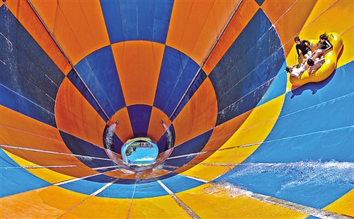 日前,游客在山東煙臺(tái)37度夢(mèng)幻海水樂(lè)園體驗(yàn)“深海龍卷風(fēng)”游樂(lè)項(xiàng)目。孫文潭攝(中經(jīng)視覺)