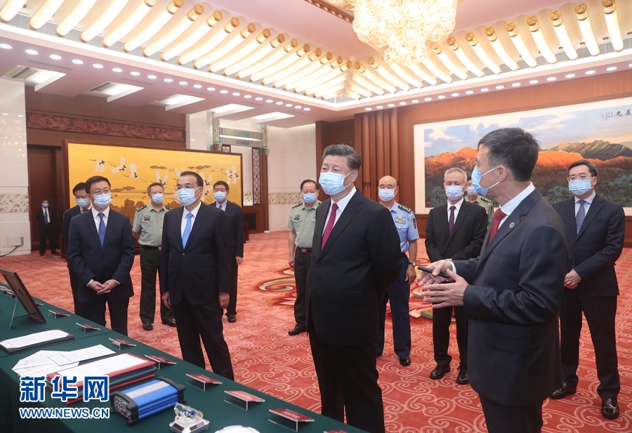 儀式結(jié)束后,習(xí)近平等來到人民大會堂河北廳,參觀北斗系統(tǒng)建設(shè)發(fā)展成果展覽展示,聽取工程建設(shè)、運行服務(wù)、應(yīng)用推廣、國際合作和發(fā)展展望介紹。體現(xiàn)北斗系統(tǒng)自主創(chuàng)新自主可控重要成果和規(guī)?;⑹袌龌?、產(chǎn)業(yè)化應(yīng)用以及國際化進程的展板和展品,吸引了習(xí)近平的目光,他不時駐足察看,詳細詢問有關(guān)情況。