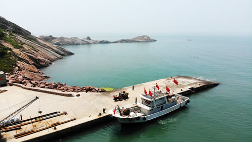 7月16日,“擁軍船”在蘇山島停靠(無人機照片)。新華社記者 王凱 攝