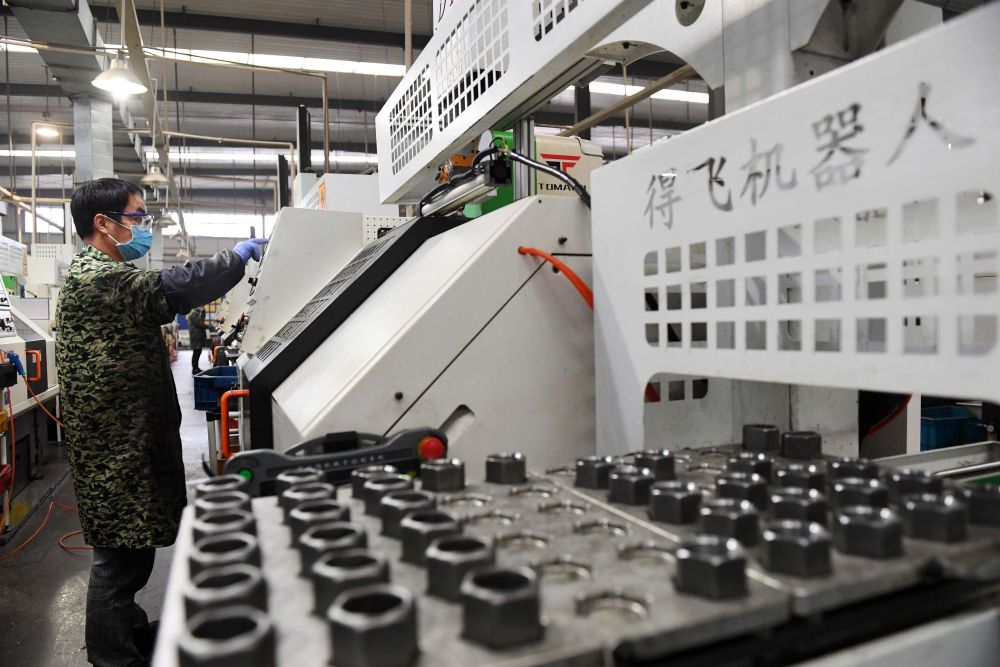 3月5日,在江西省宜春市一家企業(yè)車間內(nèi),工人在半自動化生產(chǎn)線上工作。各地工業(yè)企業(yè)在做好疫情防控的同時(shí)積極復(fù)工復(fù)產(chǎn)。新華社發(fā)(周亮 攝)