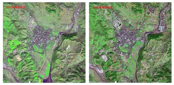 為了讓搬遷群眾搬得出、穩(wěn)得住、能致富,南坪社區(qū)的基礎(chǔ)設(shè)施狀況也在不斷完善。從遙感衛(wèi)星上可以清晰看到南坪社區(qū)從2017年到2020年的變化。