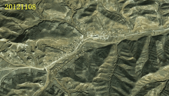這是遙感衛(wèi)星拍攝的石山村地圖。2012年以來,石山村發(fā)生了明顯變化,公路修進(jìn)了村莊,聯(lián)通了山里山外。