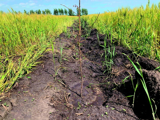 上圖:8月2日,陳巴爾虎旗特尼河林場大片麥田、油菜田,被鏟出一道道黑綠相間的“斑馬線”。中圖:8月2日,陳巴爾虎旗特尼河林場一處被毀的麥田。下圖:8月2日,陳巴爾虎旗特尼河林場一處被毀的麥田里,一些突擊種上的樹苗已經(jīng)枯萎。 本報記者王靖攝