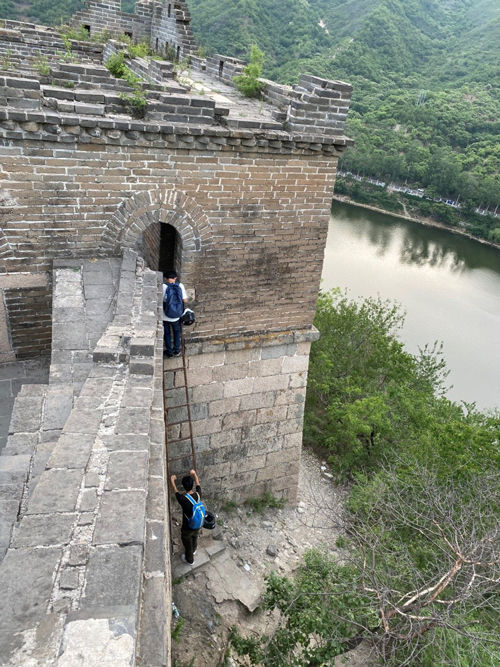 他說,登野長城是不允許的,近年來,北京市文物局也加大了巡查力度,設置了一些負責長城環(huán)保的公益志愿者和長城保護工作人員巡山。如果被發(fā)現(xiàn),梯子肯定要被鄉(xiāng)鎮(zhèn)沒收。據(jù)稱,登城所用的梯子就被鄉(xiāng)鎮(zhèn)沒收了3次。為保險起見,他會早晨放梯,晚上再撤掉。