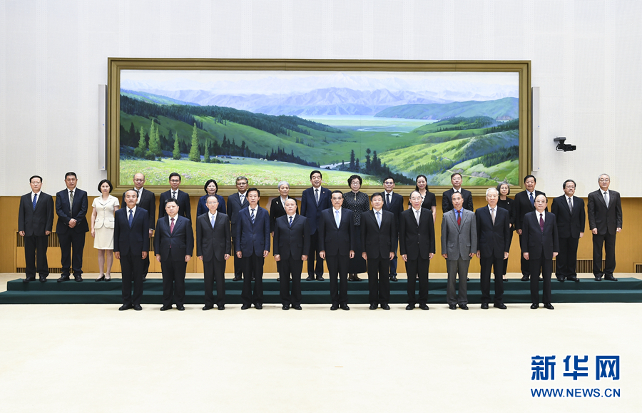 8月19日,中共中央政治局常委、國務院總理李克強在北京向新聘任的國務院參事和中央文史研究館館員頒發(fā)聘書。這是李克強與新聘任的國務院參事和中央文史研究館館員等合影。新華社記者 謝環(huán)馳 攝