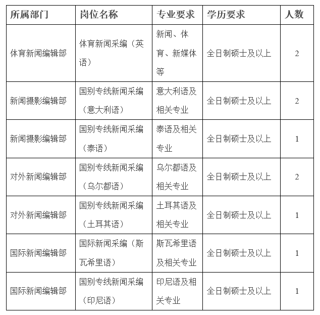 新華社面向社會公開招聘留學(xué)人員,現(xiàn)就相關(guān)事項(xiàng)公告如下: