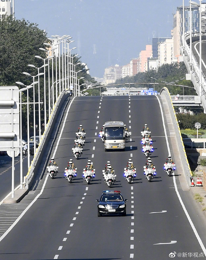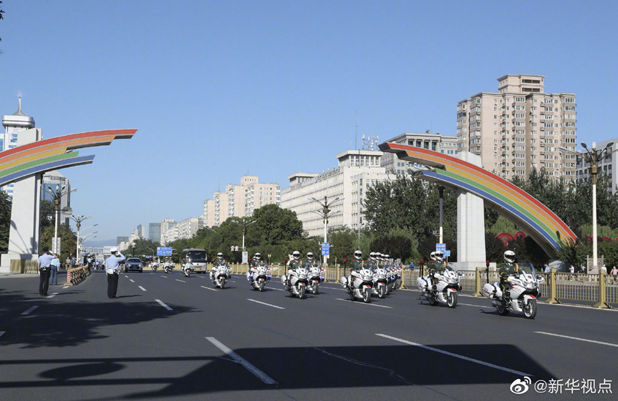 國家勛章和國家榮譽稱號獲得者集體乘坐禮賓車從住地出發(fā),由國賓護(hù)衛(wèi)隊護(hù)衛(wèi)前往人民大會堂。