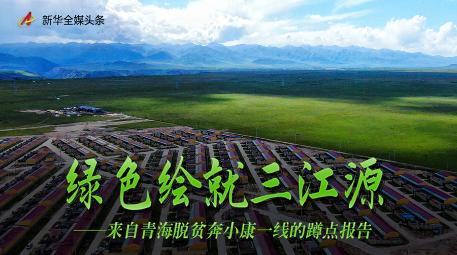 青海省果洛藏族自治州瑪沁縣雪山鄉(xiāng)陰柯河村周邊草場,遠處可看到阿尼瑪卿雪山一角(8月20日攝,無人機照片)。新華社記者 張龍 攝