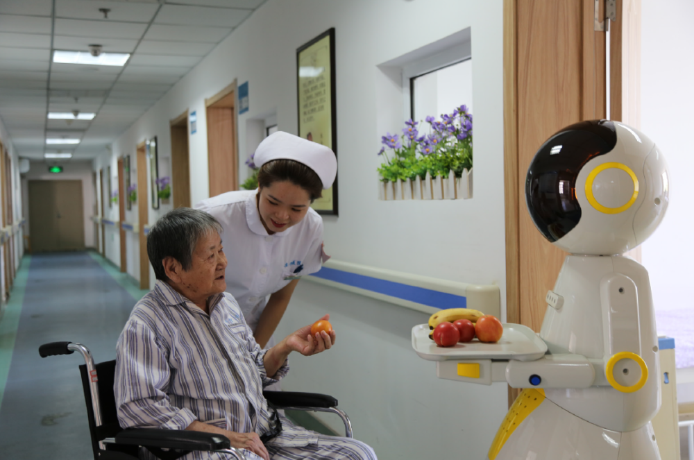 情感陪護(hù)機器人服務(wù)老年患者。(沈陽安寧醫(yī)院供圖)