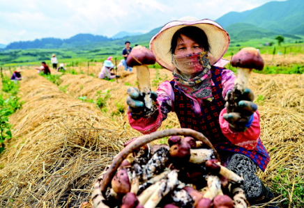 廈門援建和政縣夏潤(rùn)赤松茸種植基地。赤松茸豐收農(nóng)戶樂開懷。(圖片均為黃嶸攝)