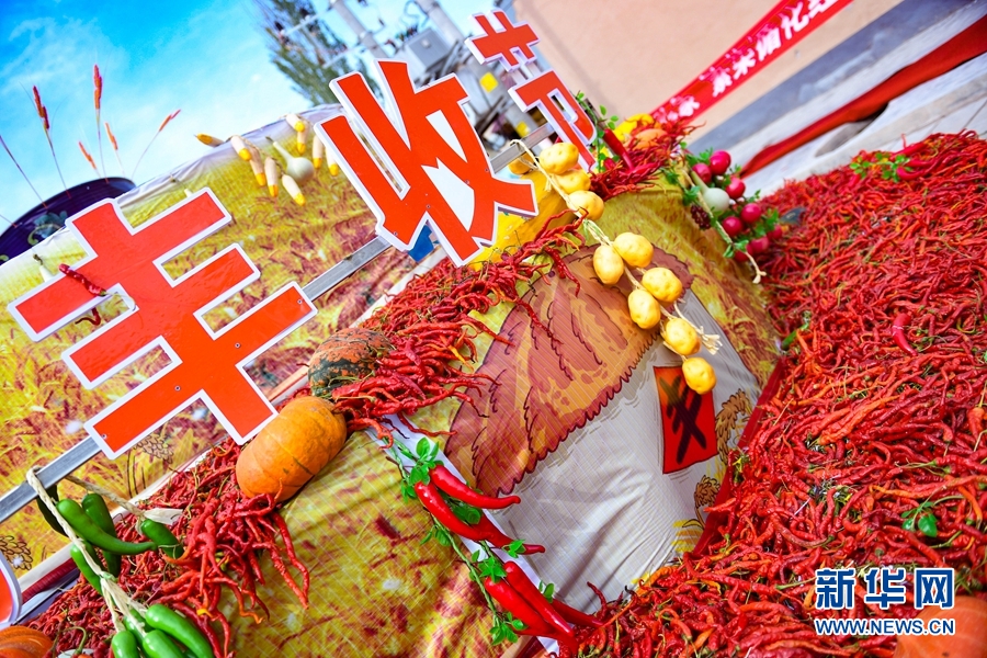2020年慶祝中國農(nóng)民豐收節(jié)暨循化縣消費(fèi)扶貧“辣椒節(jié)”現(xiàn)場展示的各類農(nóng)作物。(新華網(wǎng)潘彬彬攝)
