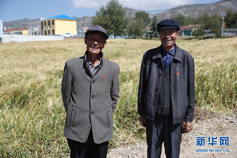 東達(dá)村黨員徐國才(左一)、楊發(fā)財接受記者采訪,他們也是東達(dá)村的致富能人。新華網(wǎng)記者焦鵬攝