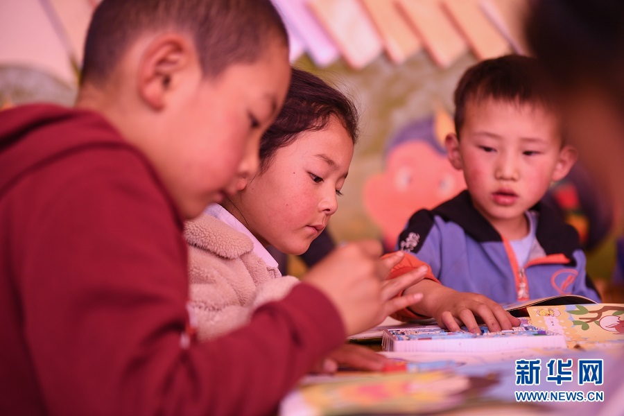 9月17日,在青海省果洛藏族自治州瑪沁縣拉加鎮(zhèn)中心幼兒園,孩子們正在專(zhuān)心上美術(shù)課。(新華網(wǎng)潘彬彬 攝)
