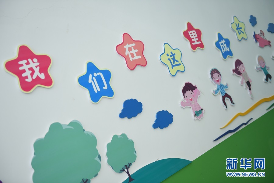 青海省果洛藏族自治州瑪沁縣拉加鎮(zhèn)中心幼兒園的文化展示墻。(新華網(wǎng)潘彬彬 攝)