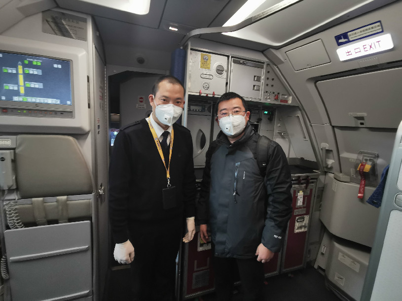 四川廣播電視臺(tái) 張藝2020年2月2日采訪“英雄機(jī)長(zhǎng)“劉傳建并合影,當(dāng)天英雄機(jī)長(zhǎng)送戰(zhàn)疫英雄前往武漢