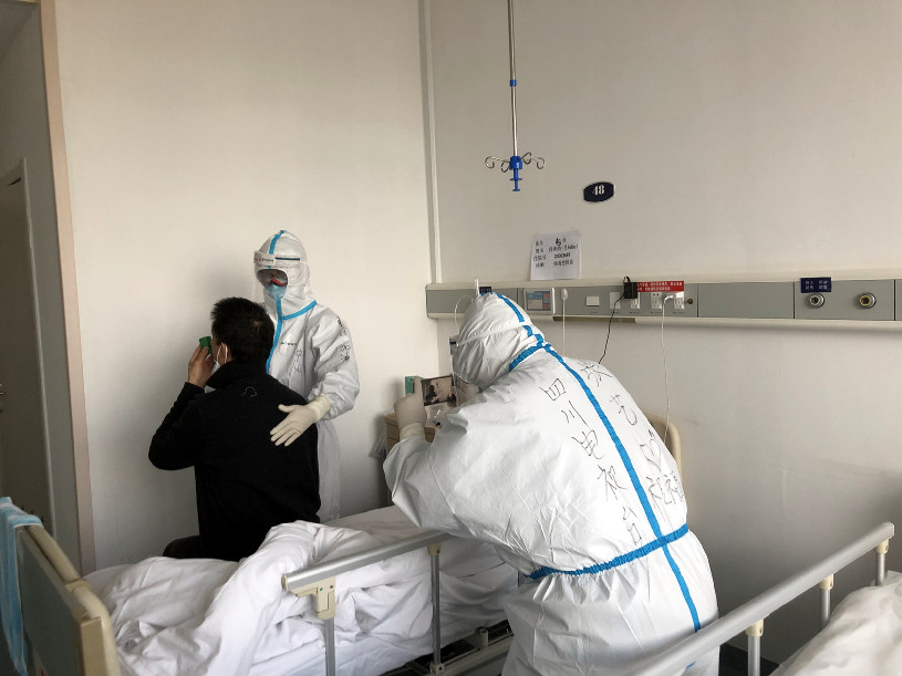 四川廣播電視臺(tái)張藝2020年3月18日在武漢大學(xué)人民醫(yī)院隔離病房采訪