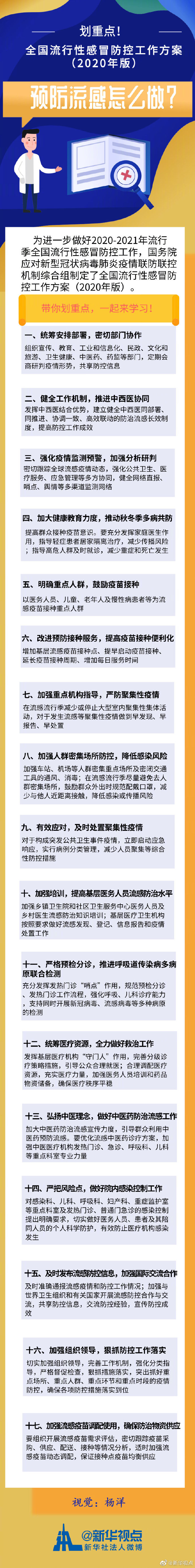 為進(jìn)一步做好2020-2021年流行季全國流行性感冒防控工作,國務(wù)院應(yīng)對新型冠狀病毒肺炎疫情聯(lián)防聯(lián)控機(jī)制綜合組制定了全國流行性感冒防控工作方案(2020年版),一起來學(xué)習(xí)! ?????