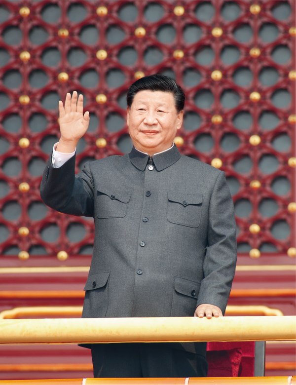 2019年10月1日,慶祝中華人民共和國(guó)成立70周年大會(huì)在北京天安門廣場(chǎng)隆重舉行。中共中央總書記、國(guó)家主席、中央軍委主席習(xí)近平發(fā)表重要講話并檢閱受閱部隊(duì)。這是習(xí)近平在天安門城樓上。 新華社記者 黃敬文/攝