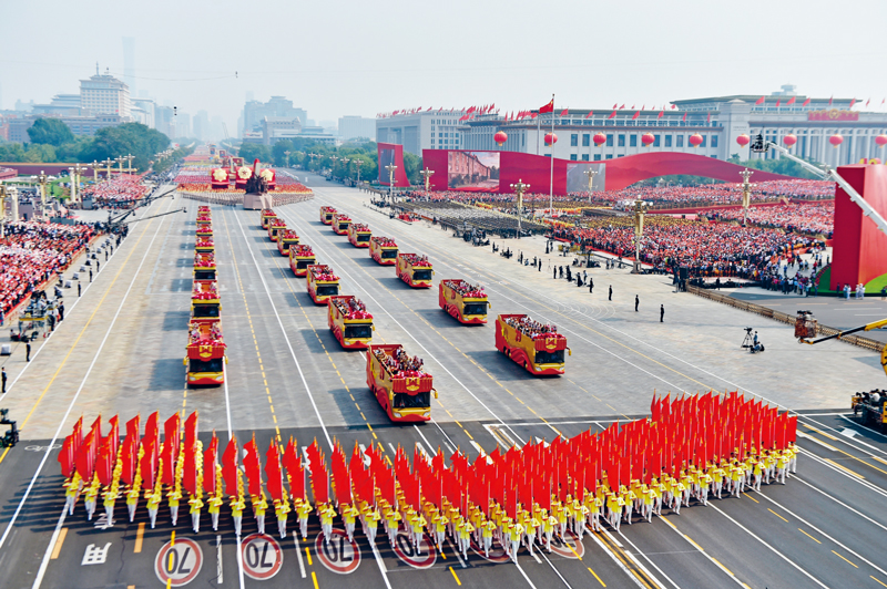 70年來(lái),在中國(guó)共產(chǎn)黨堅(jiān)強(qiáng)領(lǐng)導(dǎo)下,中國(guó)人民勇于探索、不斷實(shí)踐,成功開(kāi)辟了中國(guó)特色社會(huì)主義道路,推動(dòng)中國(guó)特色社會(huì)主義進(jìn)入新時(shí)代,中國(guó)大踏步趕上了時(shí)代,中國(guó)人民意氣風(fēng)發(fā)走在了時(shí)代前列!
