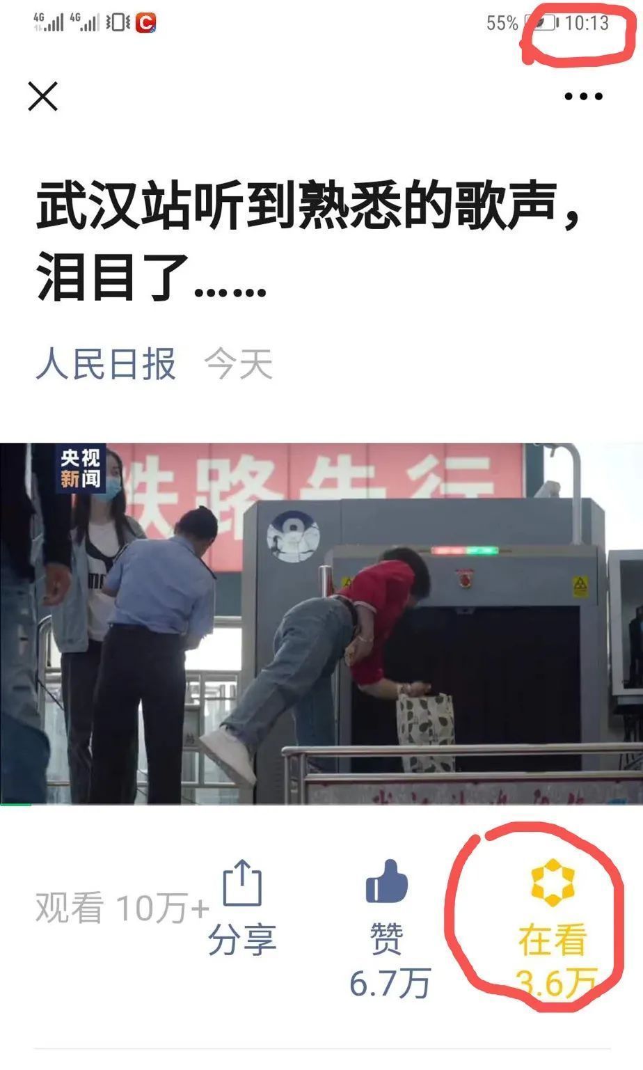 首先是央視的重磅炸彈,簡直一個接一個:早起就被一條《當(dāng)武漢火車站響起熟悉的歌聲……》的快閃新聞?wù)鸬盟查g淚奔。單是那前奏一起,看到如今擠擠挨挨的武漢火車站現(xiàn)場、交織著那曾經(jīng)至暗時刻的回憶,心疼、感動、自豪……種種情愫油然而生!當(dāng)張定宇出現(xiàn)在鏡頭里,畫面定格在“這是英雄的祖國”,那一刻,心真的是知道了什么叫“DUANG”一下!快閃之后,現(xiàn)場群眾最多說到的“不容易”和“安全感”,真是大家的心聲。也正是因為如此,人民日報微信公號16:36轉(zhuǎn)發(fā)這條視頻后,晚上10點(diǎn)剛過,在看量就已經(jīng)達(dá)到3.6萬——人心所向,可見一斑。