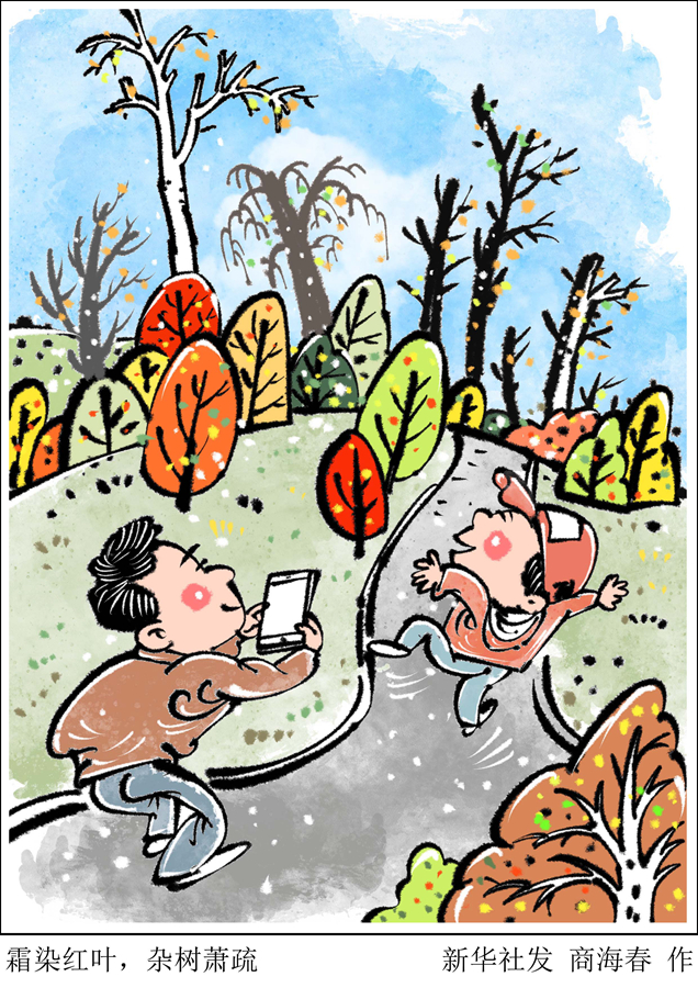 羅澍偉說,從“寒露”至“霜降”,北方霜染紅葉,南方蟬噤荷殘,秋色斑斕,美不勝收;廣大農村則進入秋熟作物收割、越冬作物播種的大忙季節(jié),石榴、山楂、柿子等果子成熟,掛滿枝頭,累累碩果惹人醉。