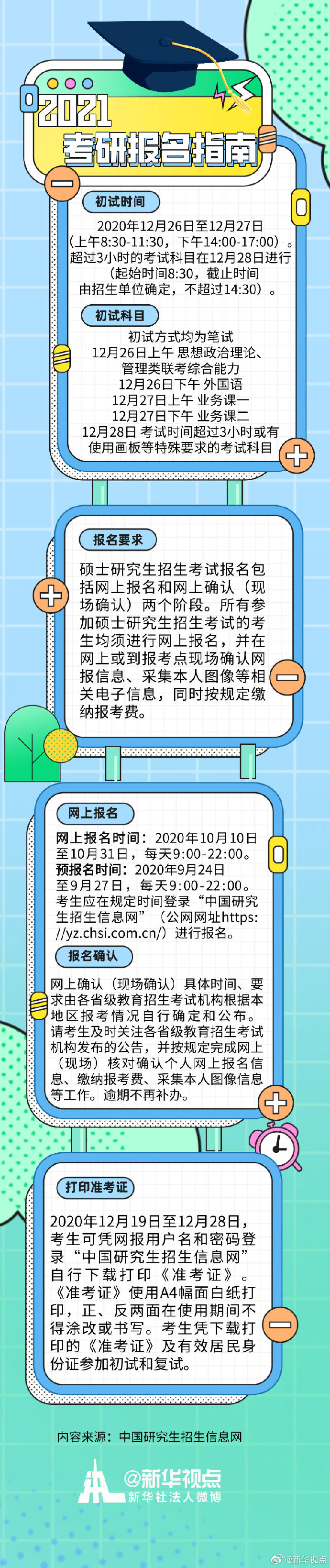 今天起至10月31日,2021年全國(guó)碩士研究生招生考試開(kāi)始正式報(bào)名??忌鷤兛稍诿刻?:00至22:00登錄“全國(guó)碩士研究生招生考試網(wǎng)上報(bào)名平臺(tái)”進(jìn)行報(bào)名,這份考試和報(bào)名安排?轉(zhuǎn)給需要的TA吧! ?????