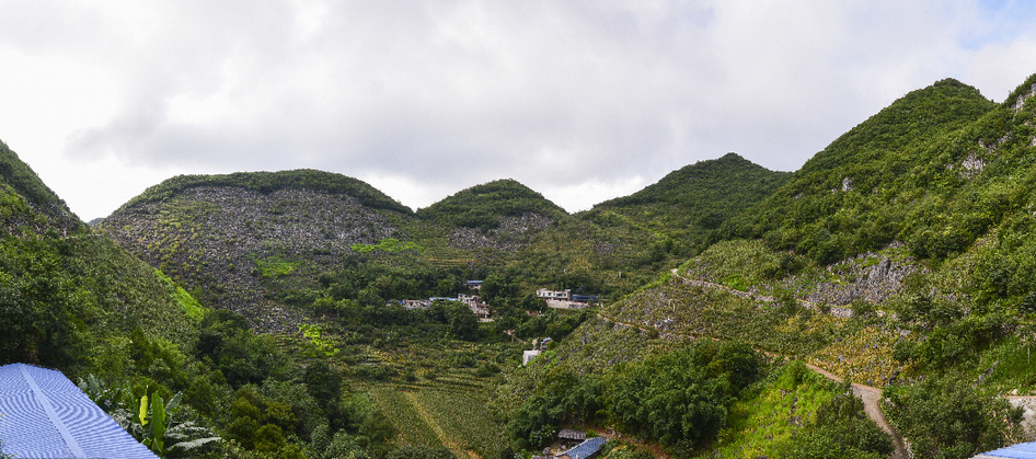西疇縣是全省乃至全國石漠化最嚴重的地區(qū)之一,99.9%的面積屬于山區(qū),石漠化面積占75.4%,生存發(fā)展環(huán)境極為惡劣。圖為1991年被石漠化包圍的村莊——西灑鎮(zhèn)么灑村委會大鄔麻村小組。(呂德仁攝)??