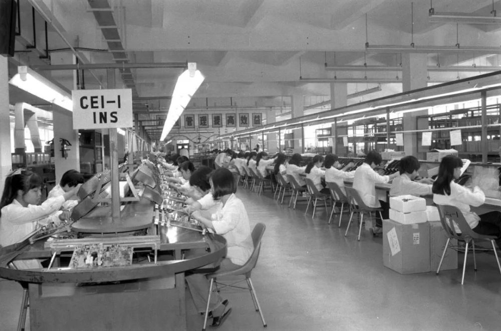 廈門特區(qū)湖里工業(yè)區(qū)廈華電子有限公司彩色電視機廠基板裝配生產(chǎn)線。新華社記者 李開遠 攝(1987年11月2日)