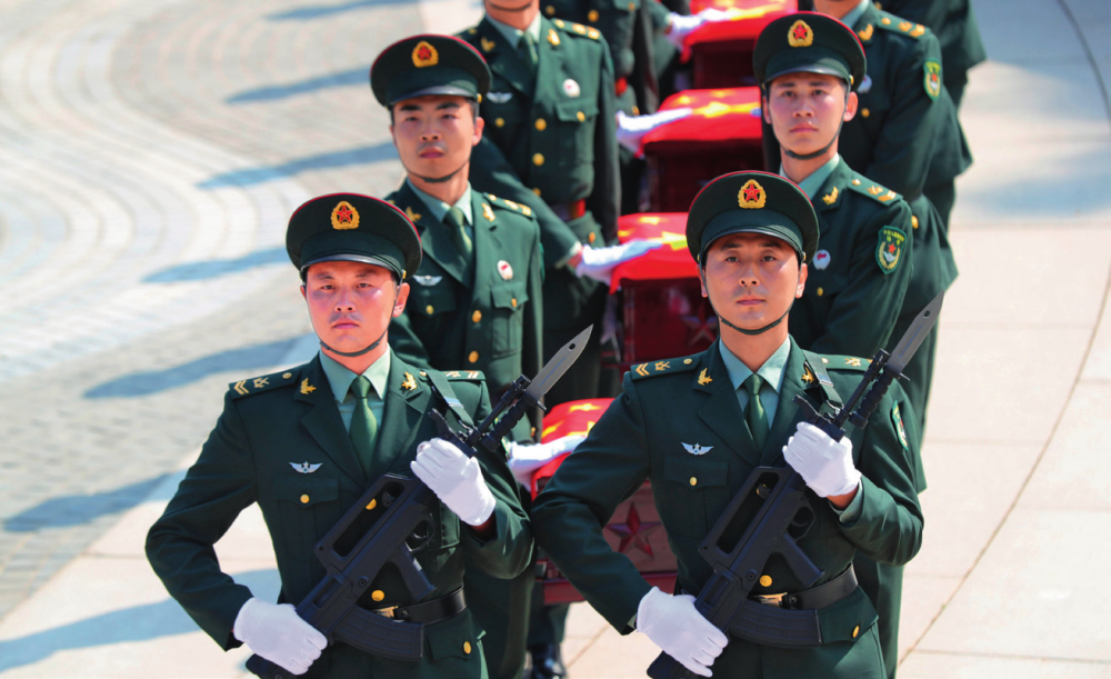 9月28日,禮兵護(hù)送志愿軍烈士遺骸棺槨進(jìn)入沈陽抗美援朝烈士陵園安葬地宮 楊青攝/本刊