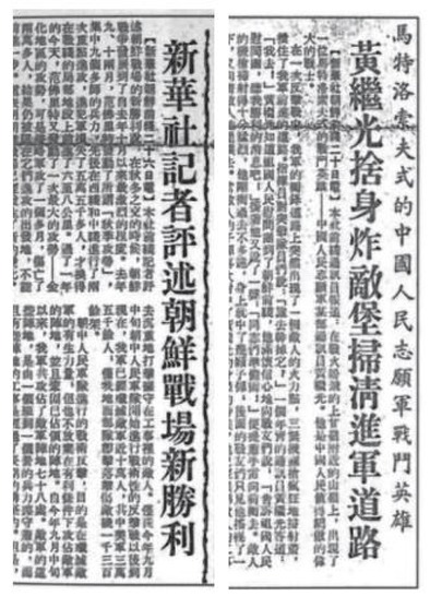 上甘嶺戰(zhàn)役期間,國內(nèi)報(bào)紙刊登的新華社部分報(bào)道版面。