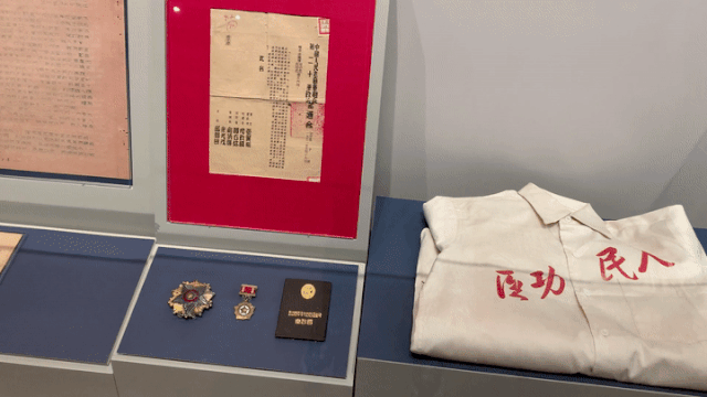 在新華社社史館二樓的展廳里,除了上述文字,還擺放著當(dāng)年電文的手寫原稿,戰(zhàn)地記者的筆記本、記者證,以及獲得的各種軍功獎(jiǎng)?wù)?,還有戰(zhàn)場上用過的電文發(fā)報(bào)機(jī)……