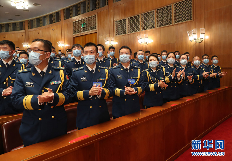 ??? 10月23日,紀(jì)念中國(guó)人民志愿軍抗美援朝出國(guó)作戰(zhàn)70周年大會(huì)在北京人民大會(huì)堂隆重舉行。圖為志愿軍老戰(zhàn)士、老同志入場(chǎng)時(shí),大會(huì)現(xiàn)場(chǎng)的解放軍和武警部隊(duì)官兵代表起立鼓掌。(新華網(wǎng) 翟子赫 攝)