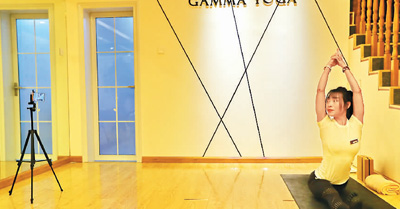 位于河北省秦皇島市海港區(qū)的一家瑜伽會(huì)所內(nèi),瑜伽教練正在通過直播的方式為學(xué)員講解課程。曹建雄攝(人民視覺)