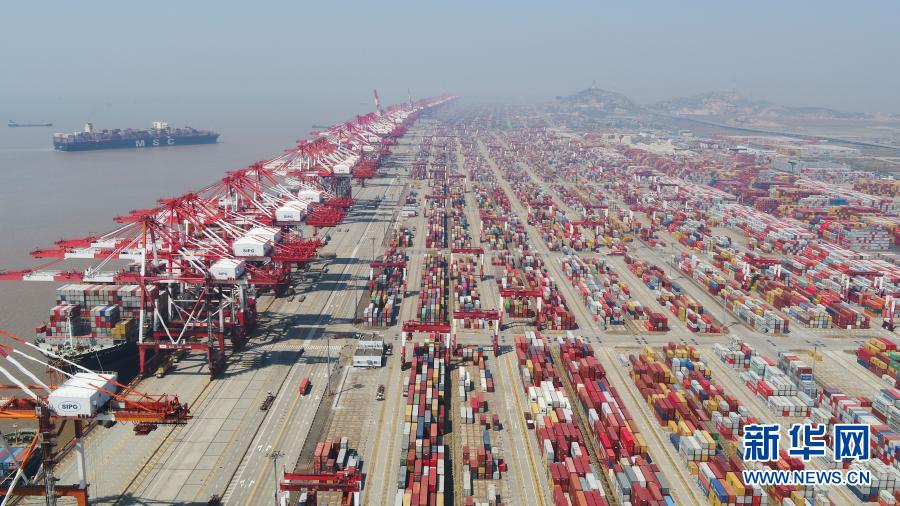 上海洋山港集裝箱碼頭(3月18日攝,無(wú)人機(jī)照片)。新華社記者 丁汀 攝