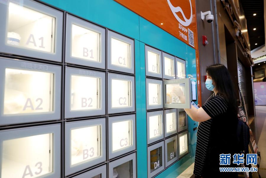 一位顧客通過(guò)APP掃碼,在上海地鐵13號(hào)線世博會(huì)博物館地鐵站附近的一家盒小馬服務(wù)點(diǎn)取餐柜中拿取預(yù)定的早餐(7月17日攝)。新華社記者 方喆 攝