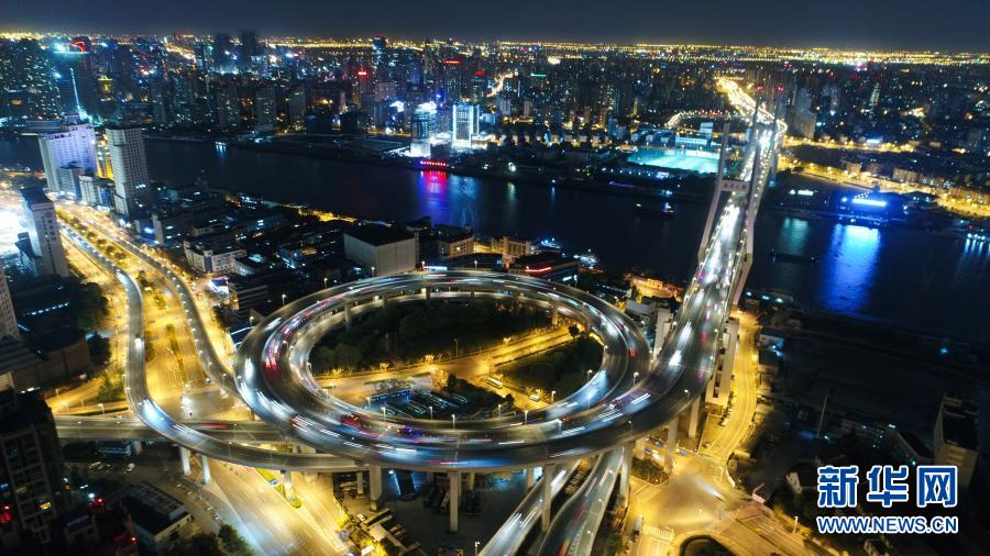 這是上海南浦大橋夜景(2017年4月13日攝,無(wú)人機(jī)照片)。新華社記者 丁汀 攝