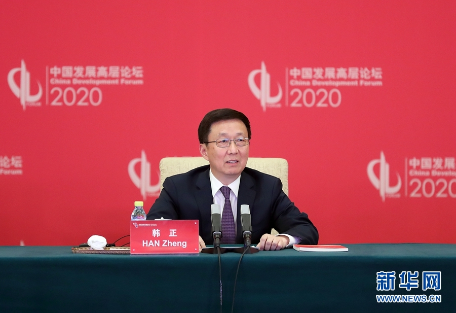 11月11日晚,中國發(fā)展高層論壇2020年年會在北京開幕。中共中央政治局常委、國務(wù)院副總理韓正出席開幕式并致辭。新華社記者 姚大偉 攝